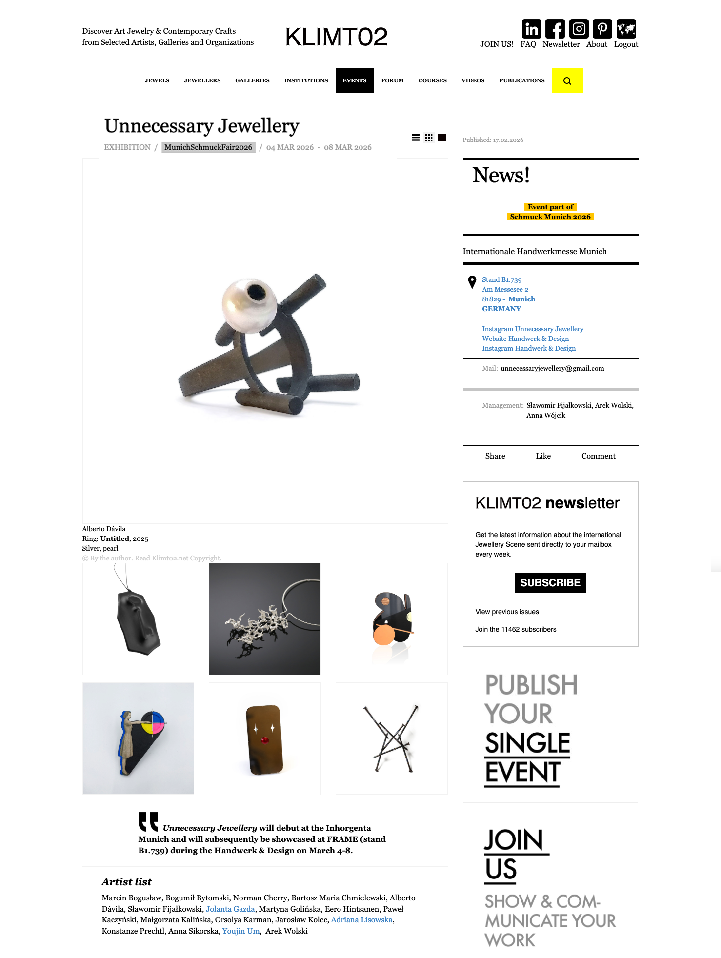 Unnecessary Jewellery | Internationale Handwerkmesse Munich | March 4-8, 2026 |